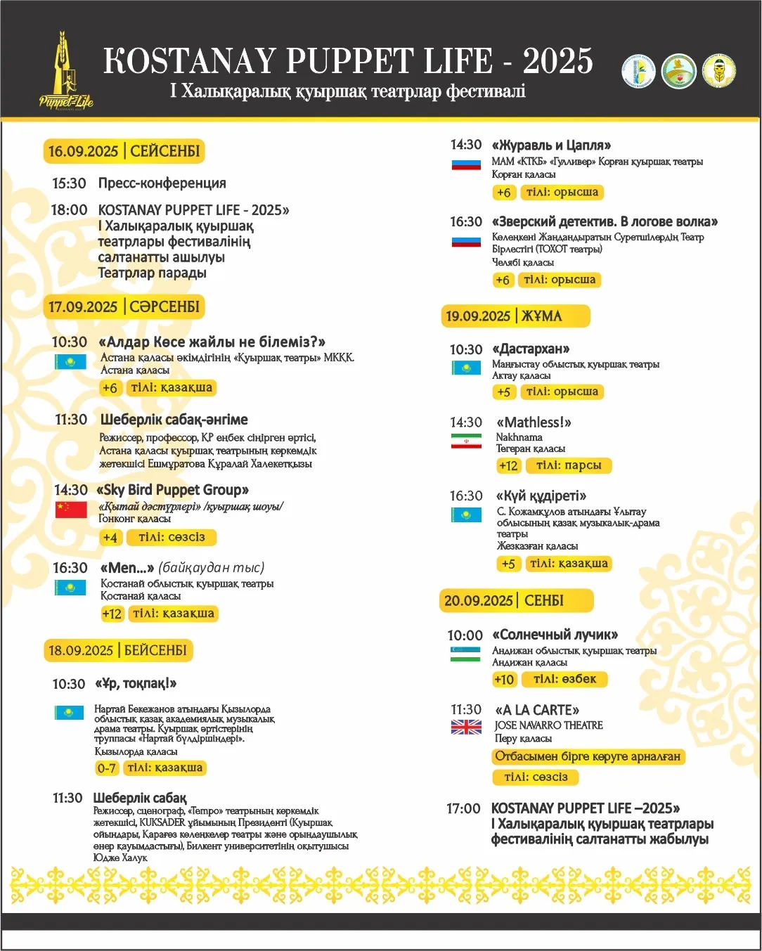 Фестиваль 2025 жылдың 17-20 қыркүйегі аралығында өтеді.